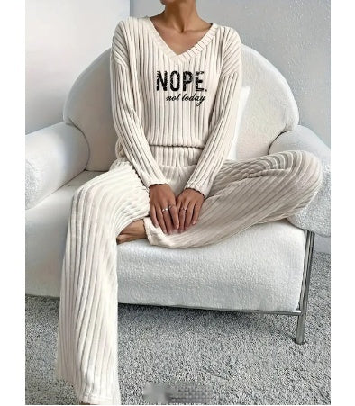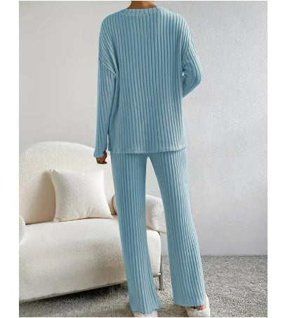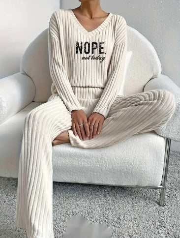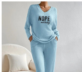 Casual Straight Pants Loose Temperament V-neck Sunken Stripe Printing Knitting Suit