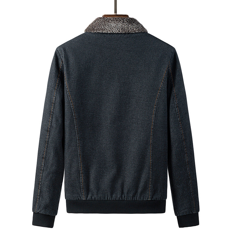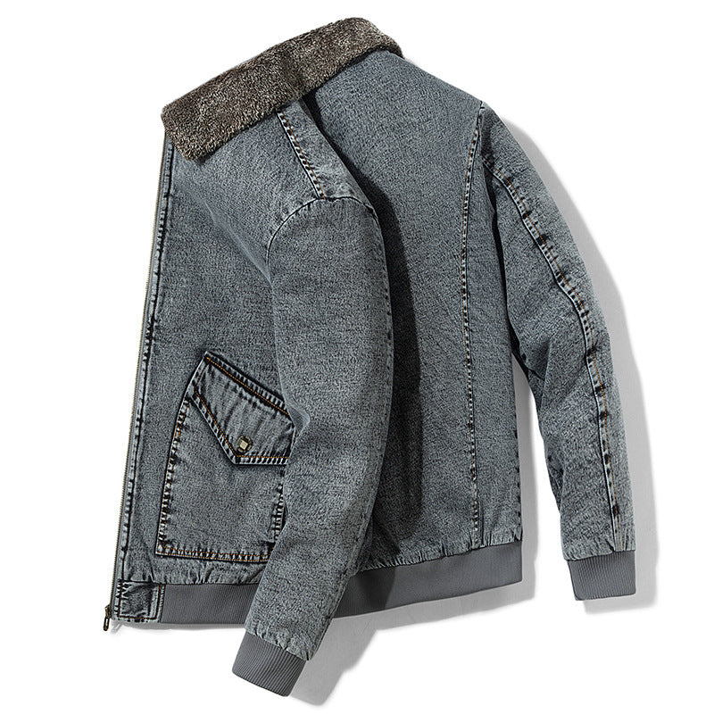 Denim Jacket Men's Loose Cargo Fur Collar
