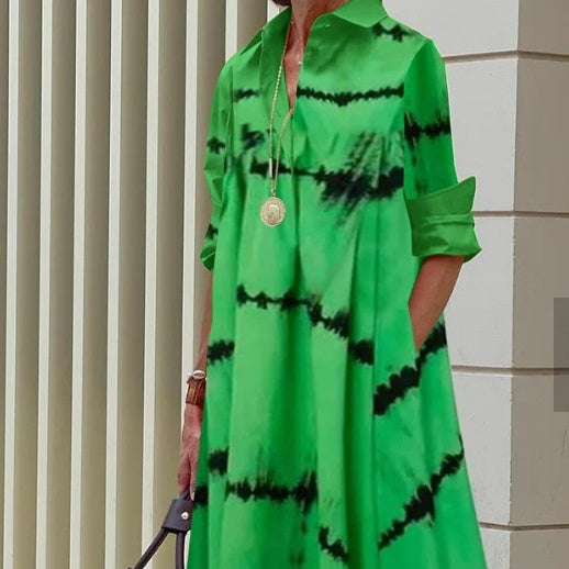 Fashionable Print Shirt Collar Long Women's Clothing Dress