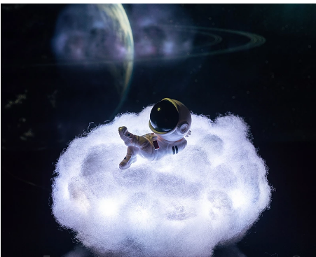 Small and cute astronauts can enjoy themselves comfortably on the cloud.