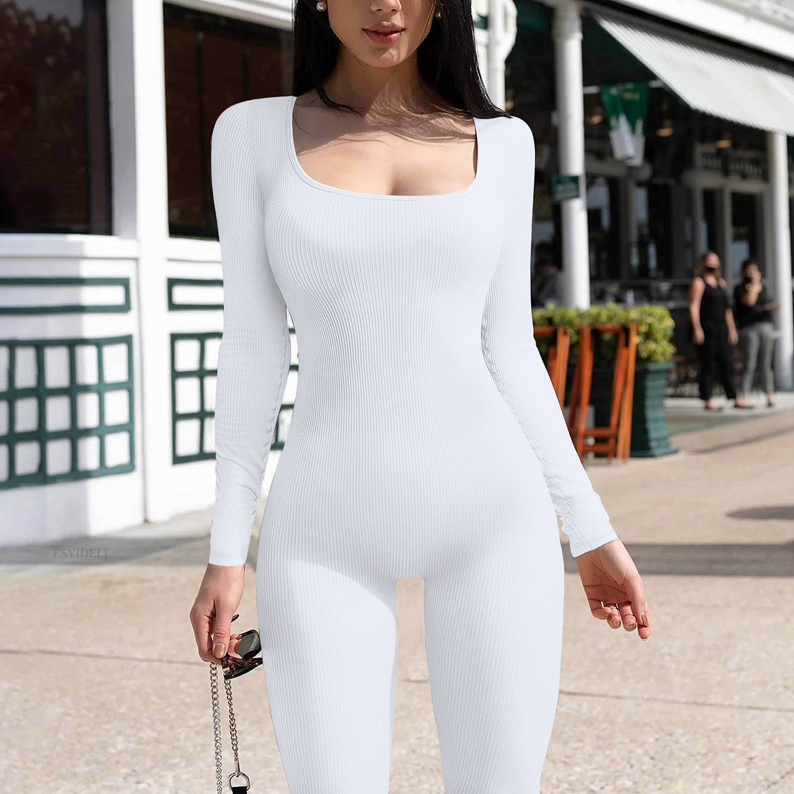 Long Sleeve Vest Jumpsuit Thread Square Collar Backless Hip Raise Slim Fit Sports Jumpsuit