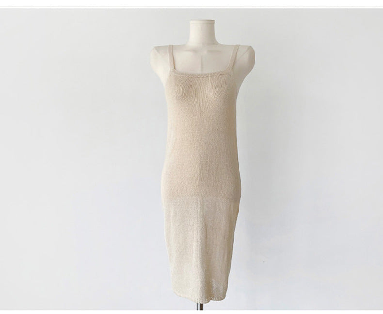 New Gentle Temperament Slim V-neck Solid Color Knitted Dress Casual Women's Clothing