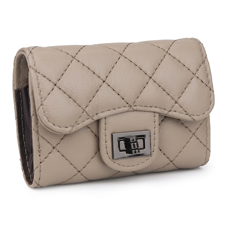 Sheepskin Expanding Card Holder Diamond Plaid Women