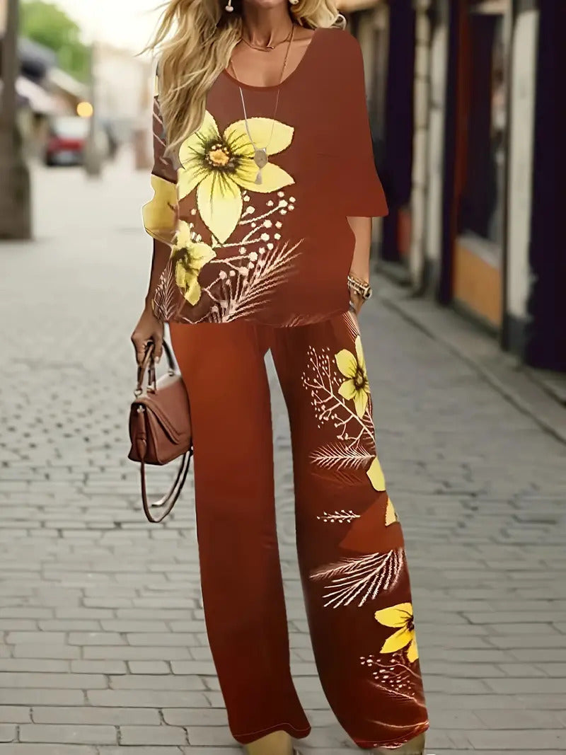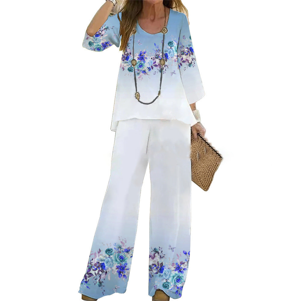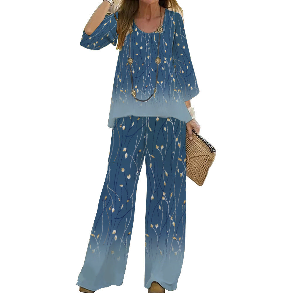 Suit Women's Two-piece Set Fashion Loose Top Wide Leg Pants 3D Printing