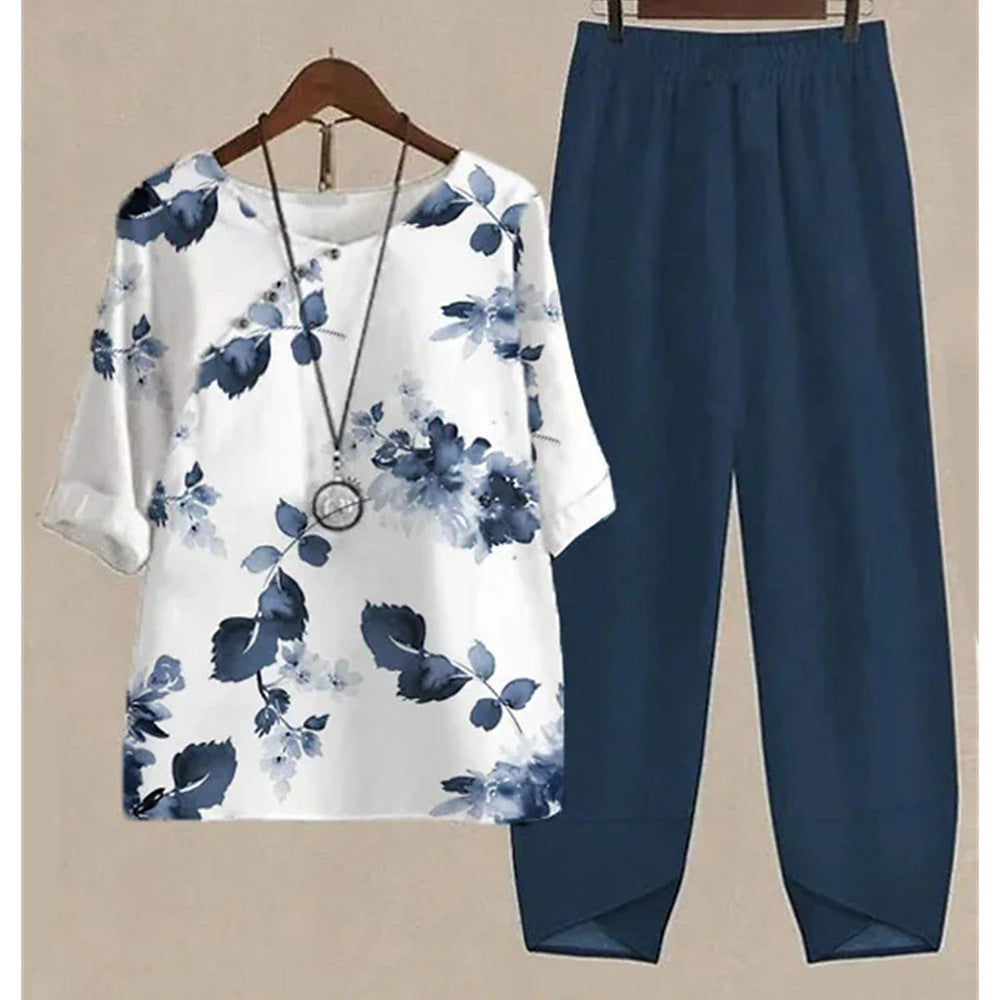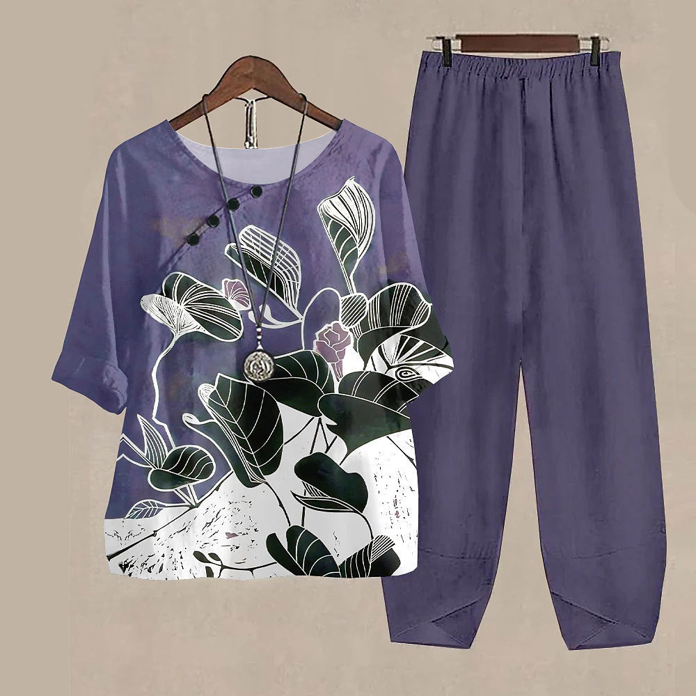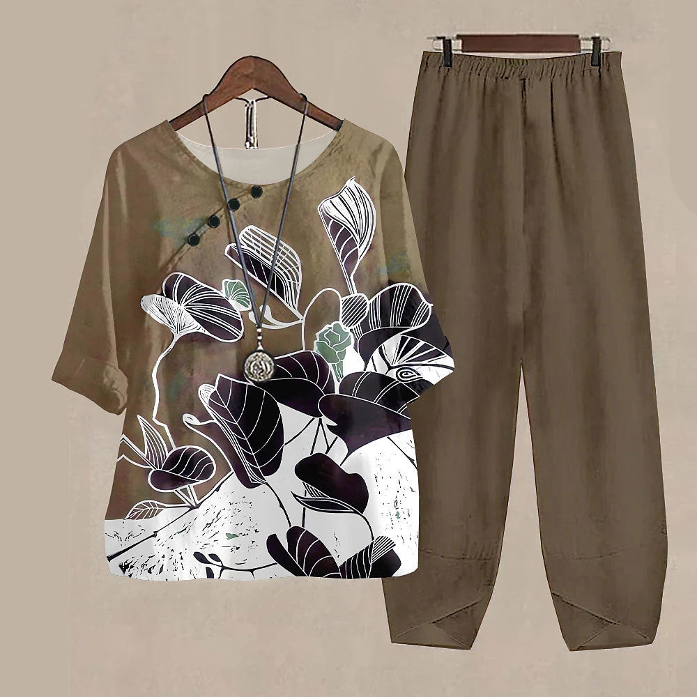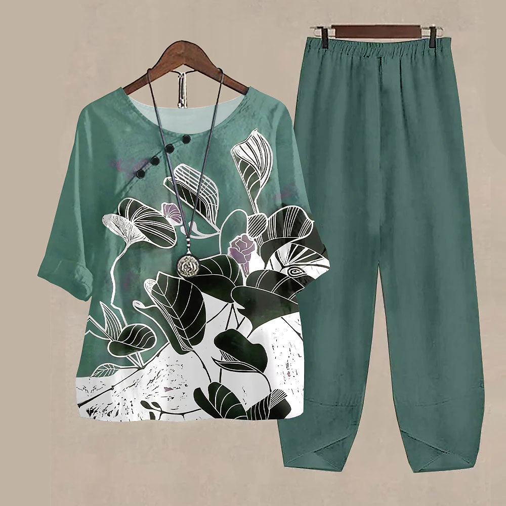 Women's Printed Loose Casual Short Sleeved Pants Set
