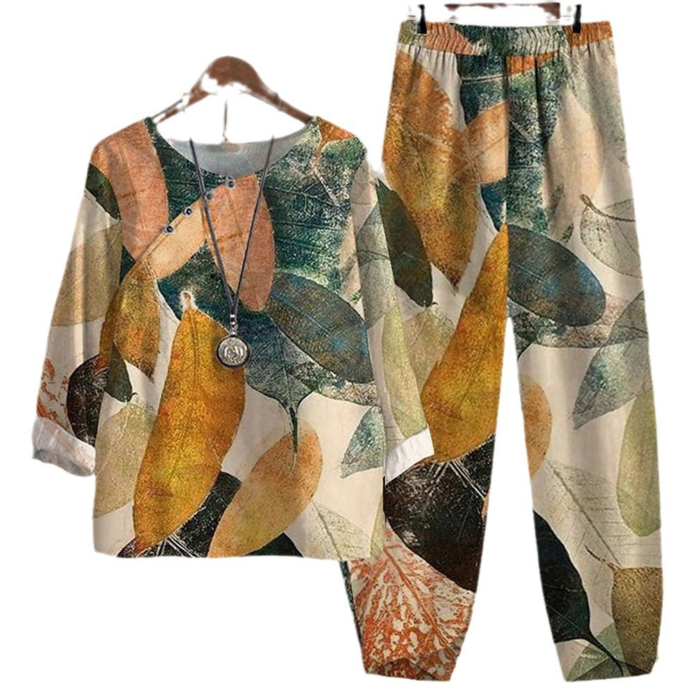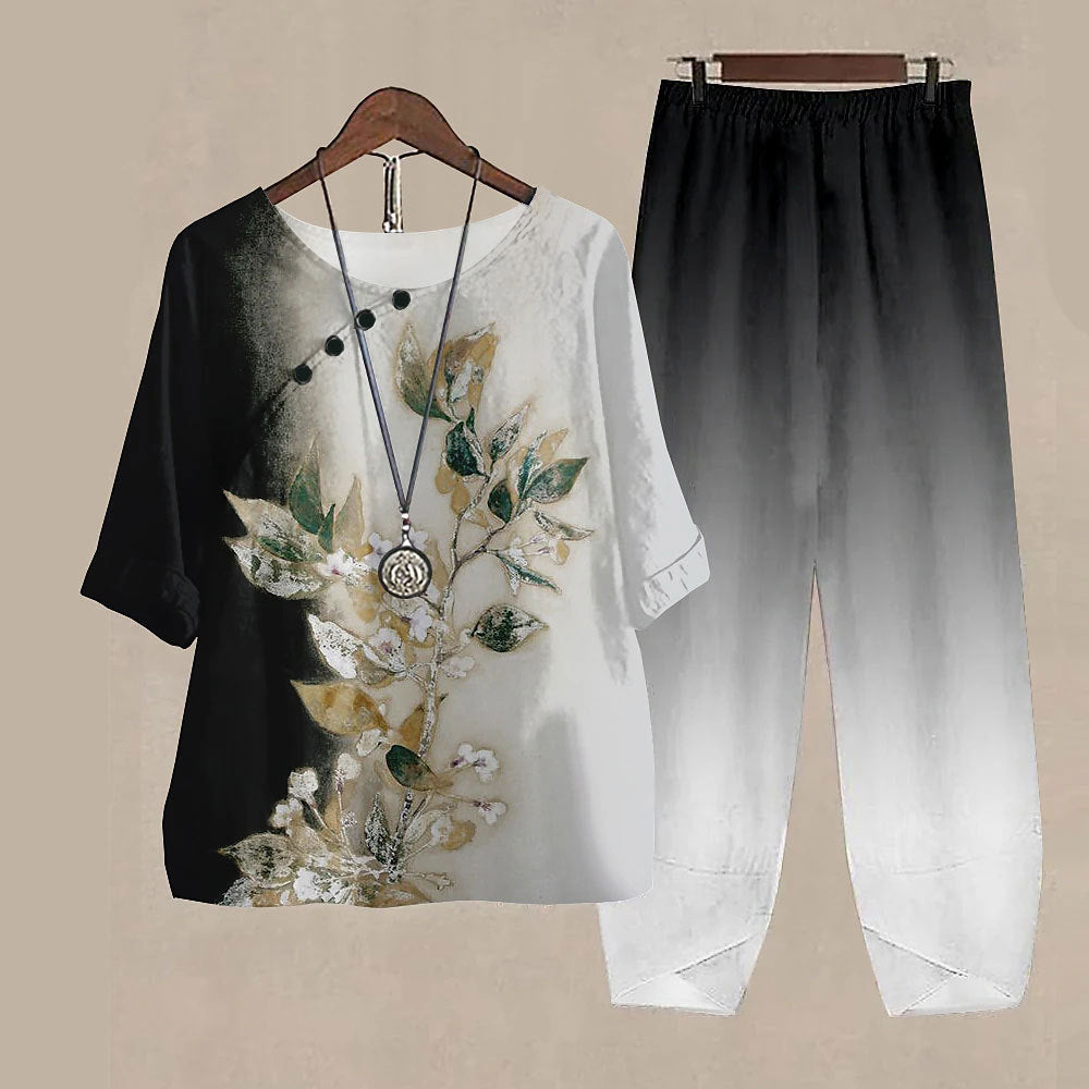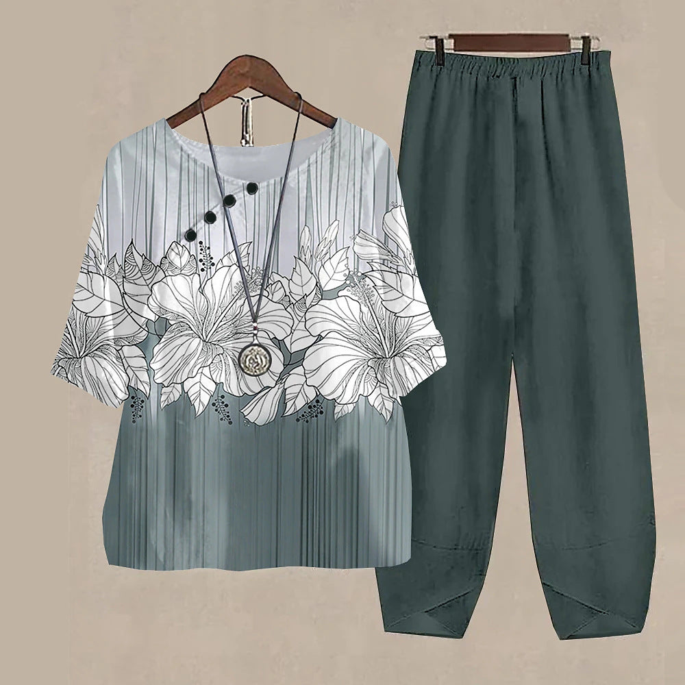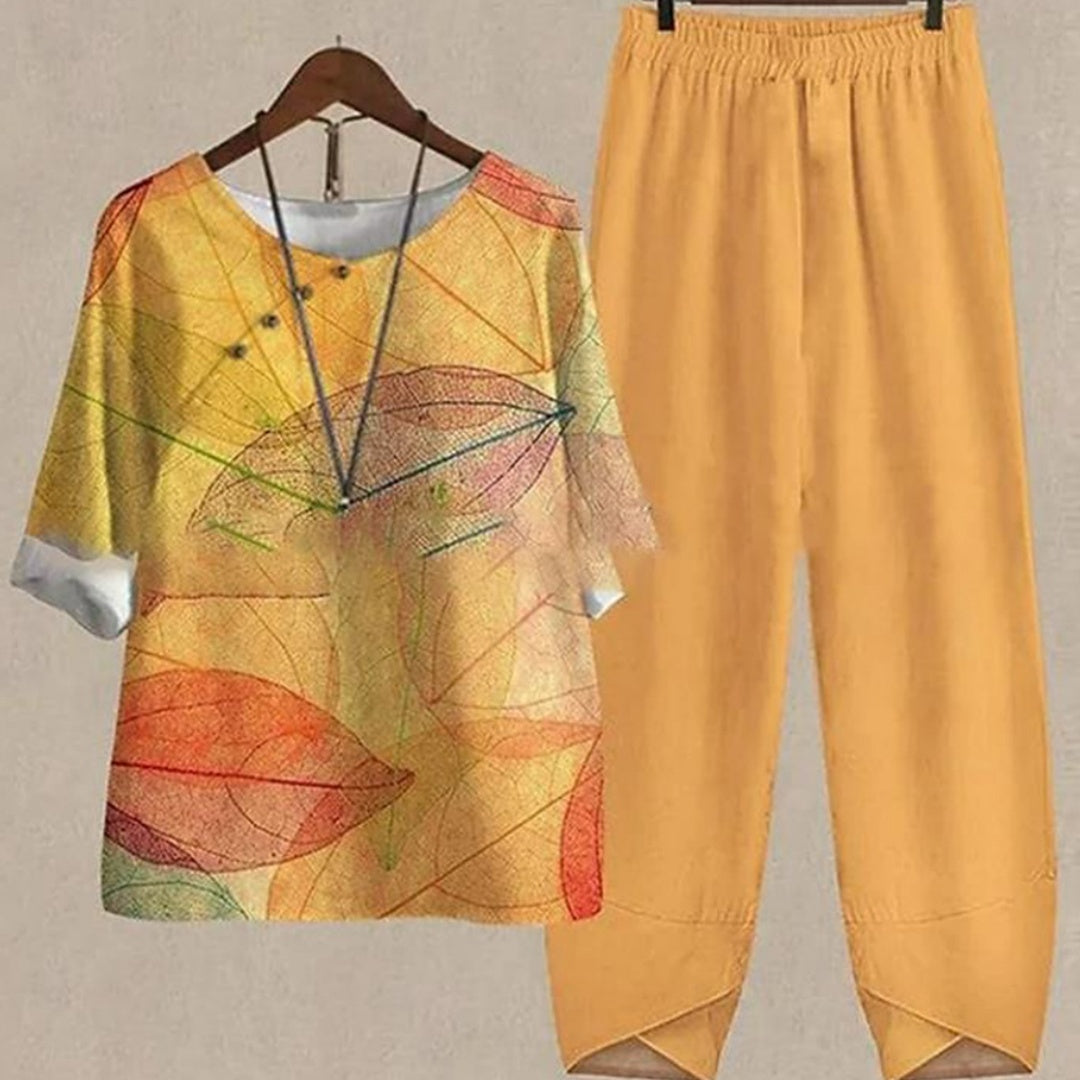 Women's Printed Loose Casual Short Sleeved Pants Set